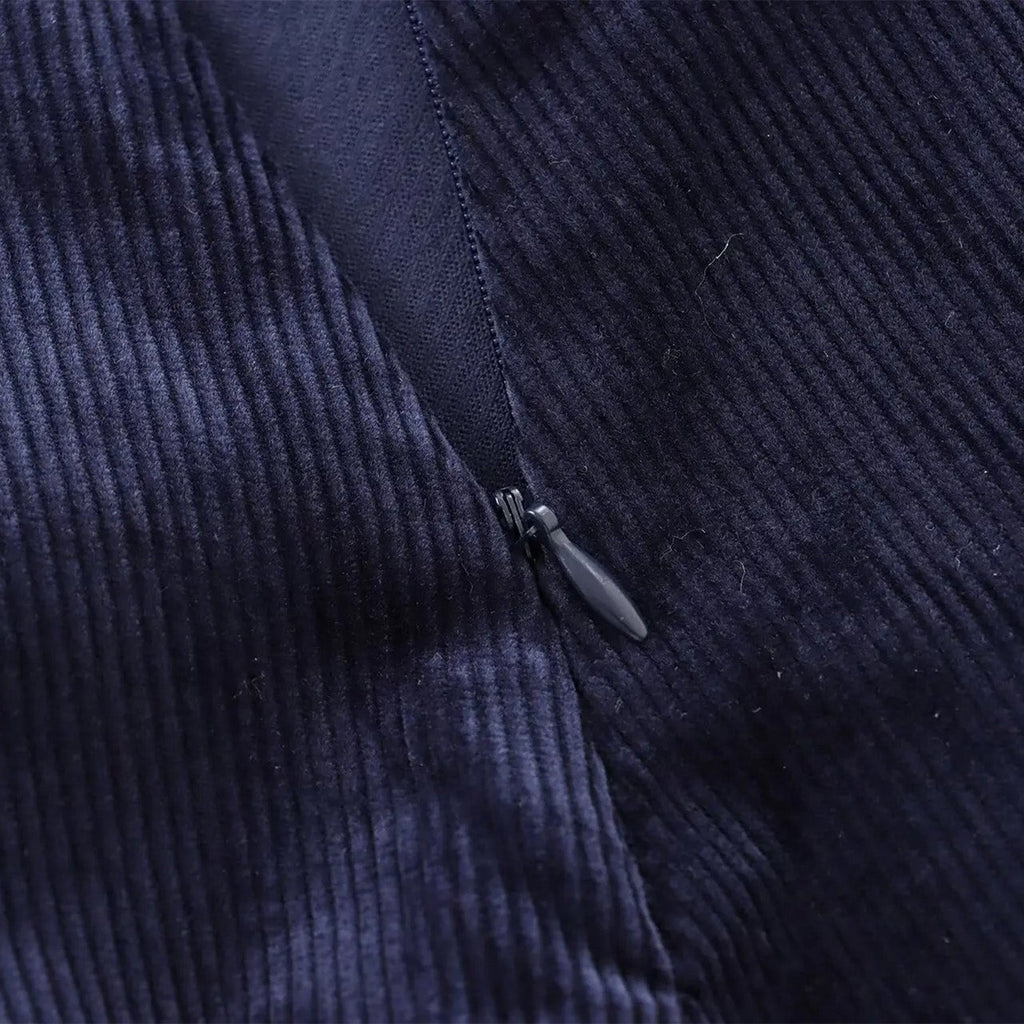 Blusa sem mangas com decote profundo em V e recortes estruturados no busto. Tecido canelado com textura em veludo cotelê. Fecho em zíper nas costas.