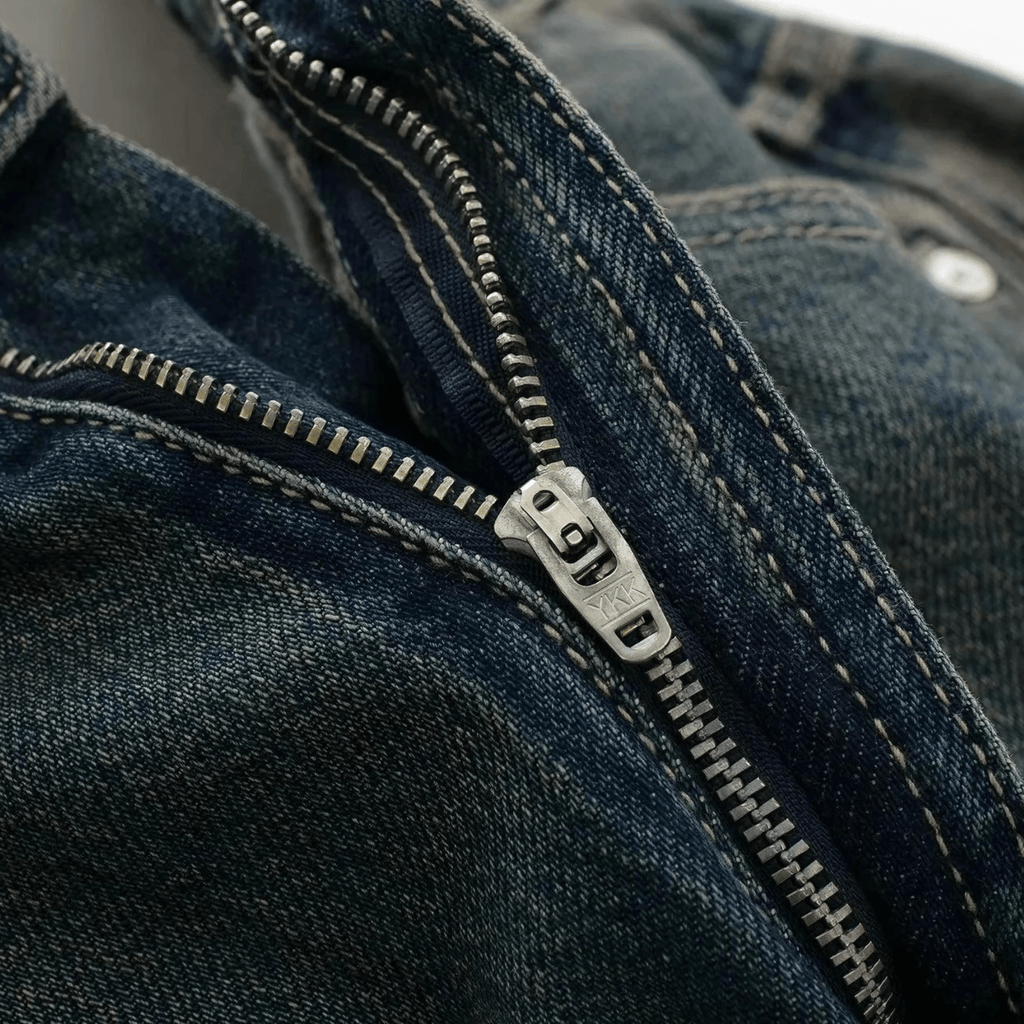 Calça cargo de cintura alta com múltiplos bolsos utilitários. Fecho frontal com botão metálico e zíper. Acabamento em lavagem desgastada, costuras reforçadas e passantes para cinto.