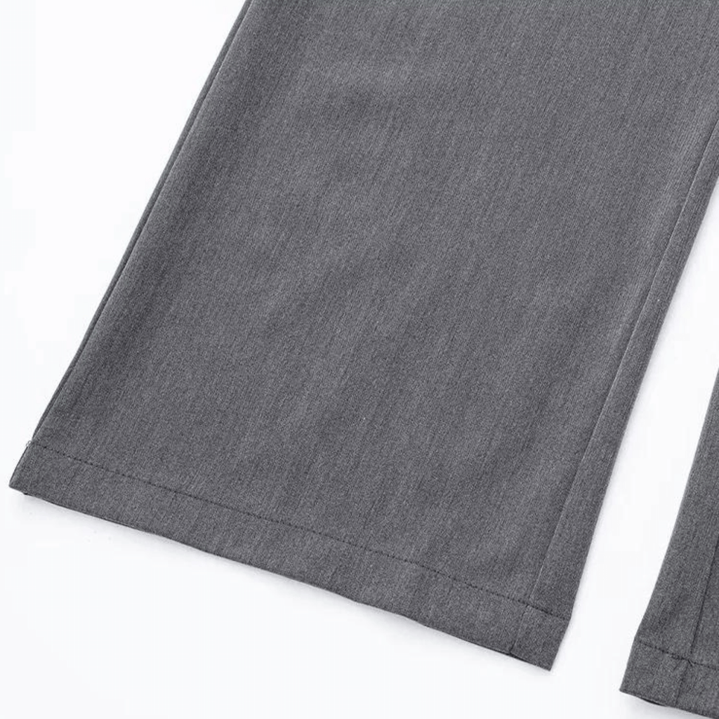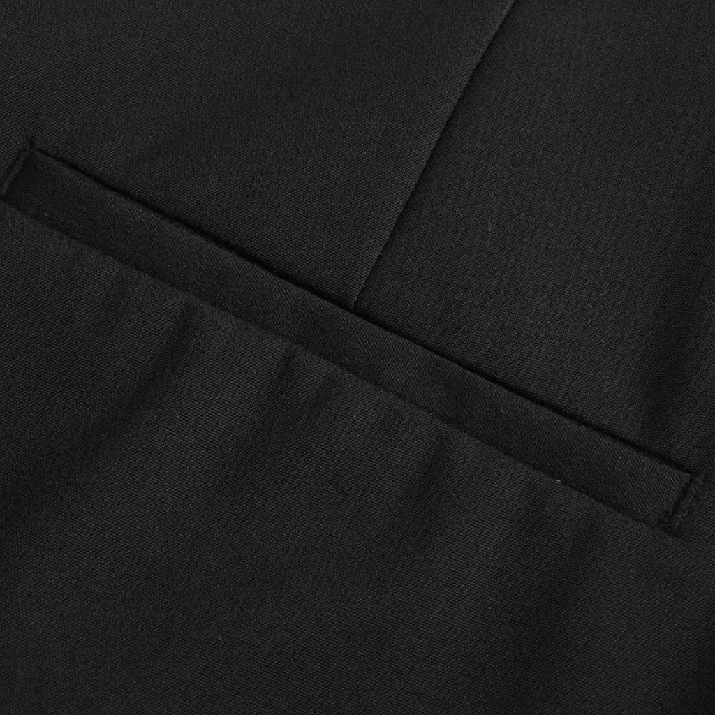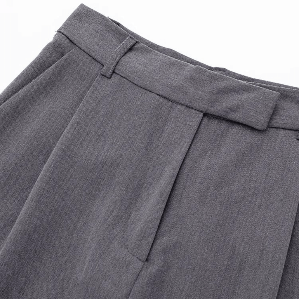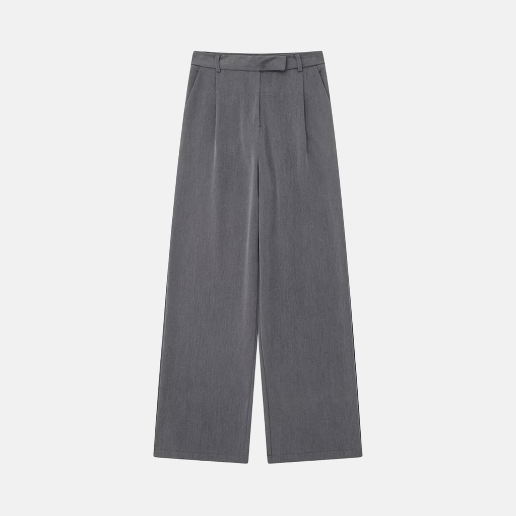 Calça de alfaiataria com modelagem reta e cintura alta. Bolsos laterais e traseiros embutidos. Fecho frontal com zíper oculto e botão.