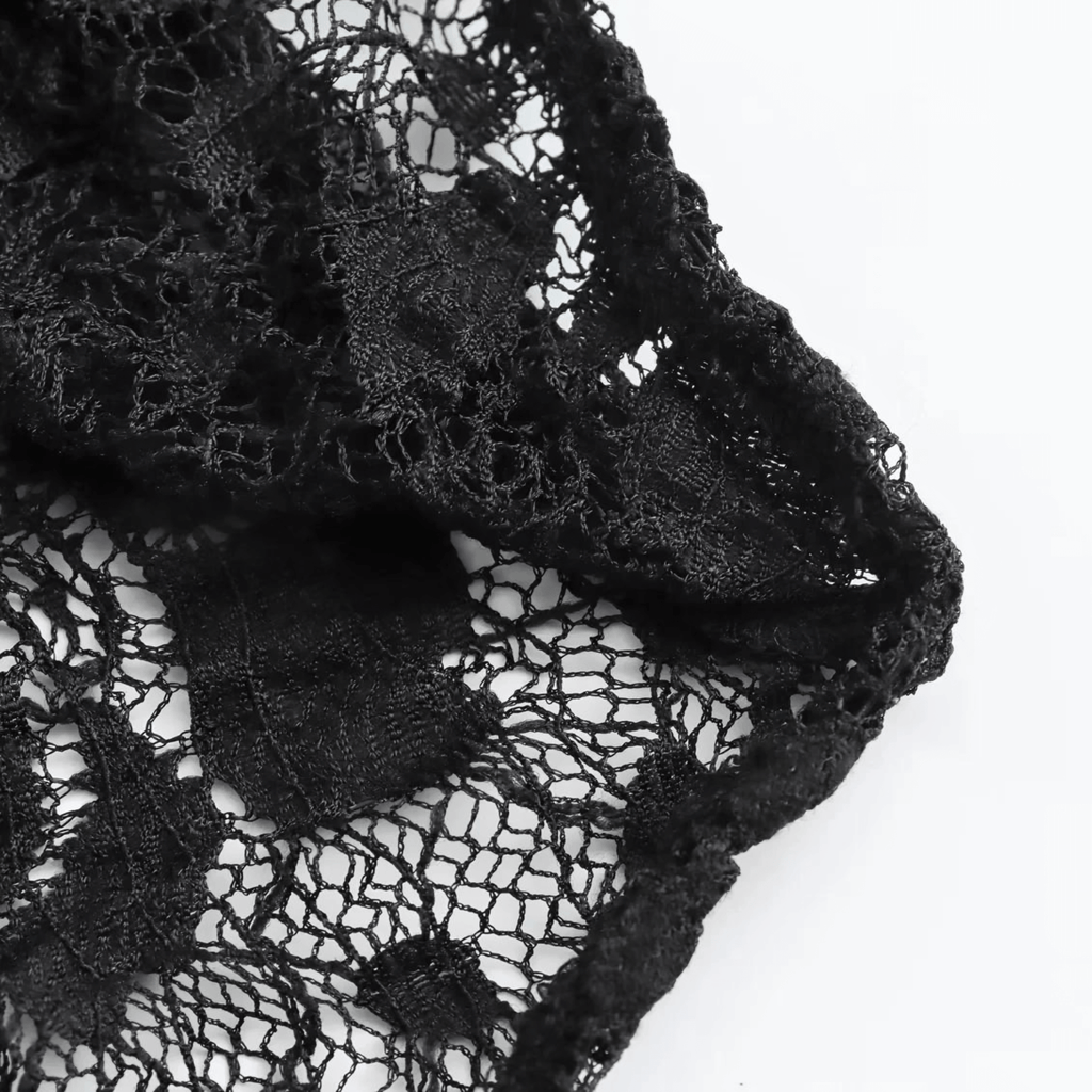 Calça reta em renda preta com acabamento transparente. Possui cintura alta e barra levemente flare. Detalhes de costura discreta e design delicado em renda vazada.