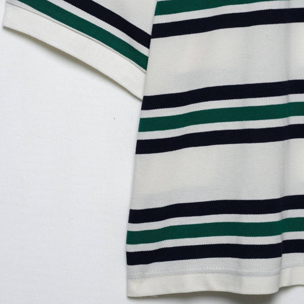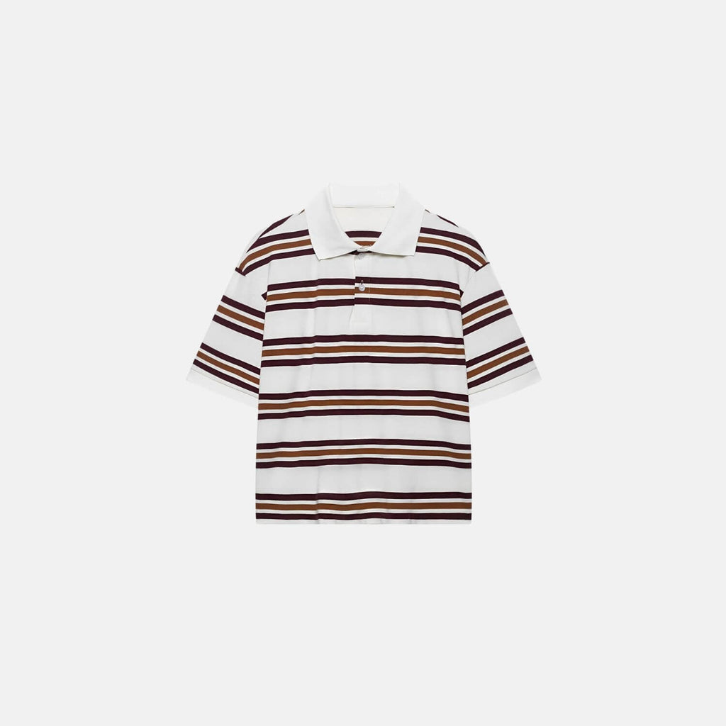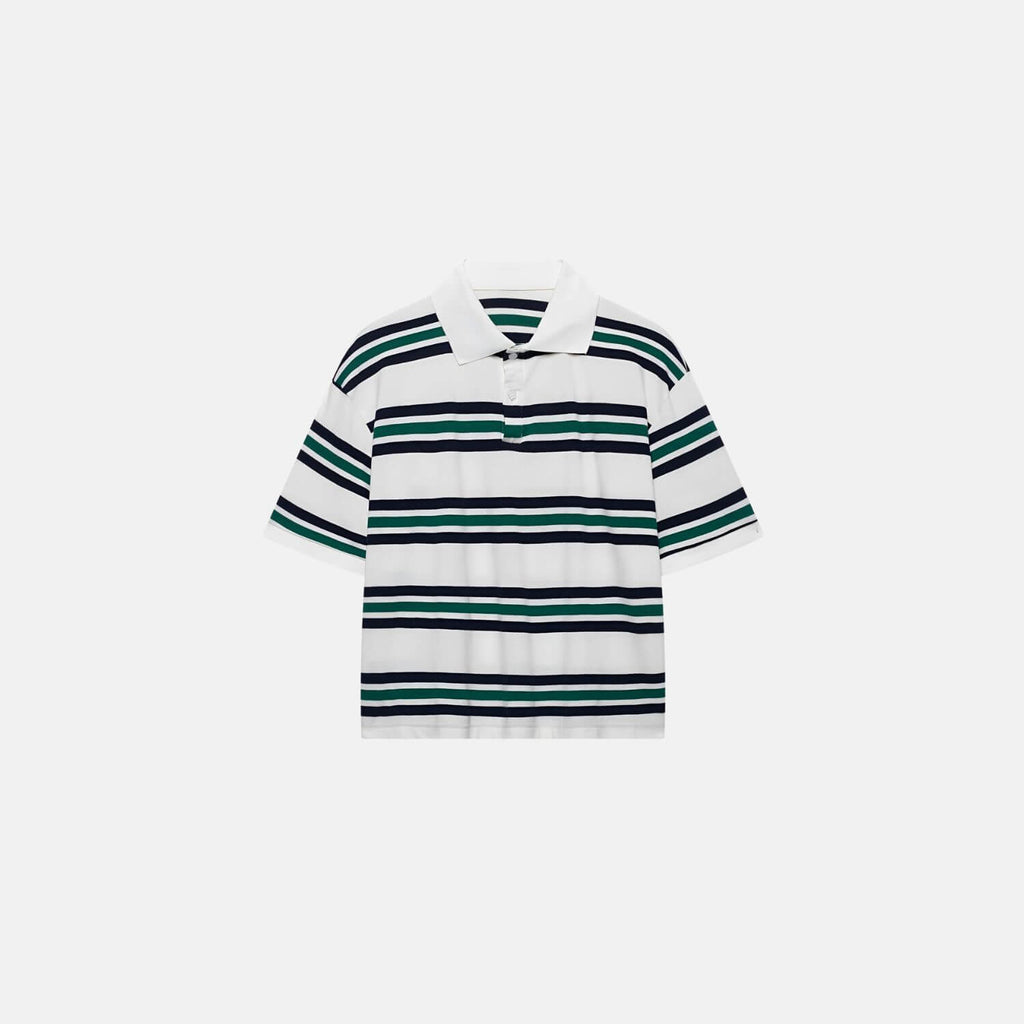 Camisa polo oversized com mangas curtas e estampa listrada. Gola tradicional com abertura em botões. Acabamento canelado nas mangas e barra reta..