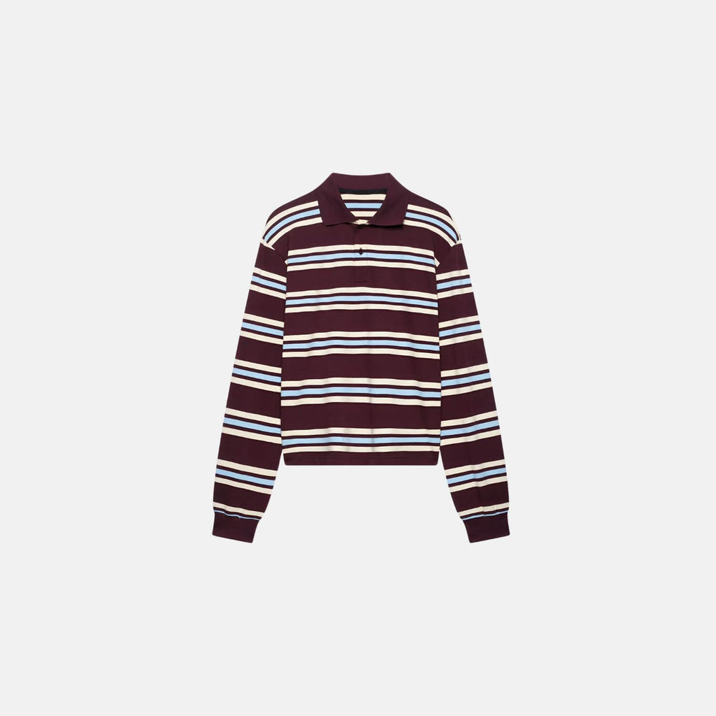 Camisa polo de manga longa com estampa listrada em contraste. Modelagem reta com punhos canelados. Gola clássica com abertura frontal em botões discretos.