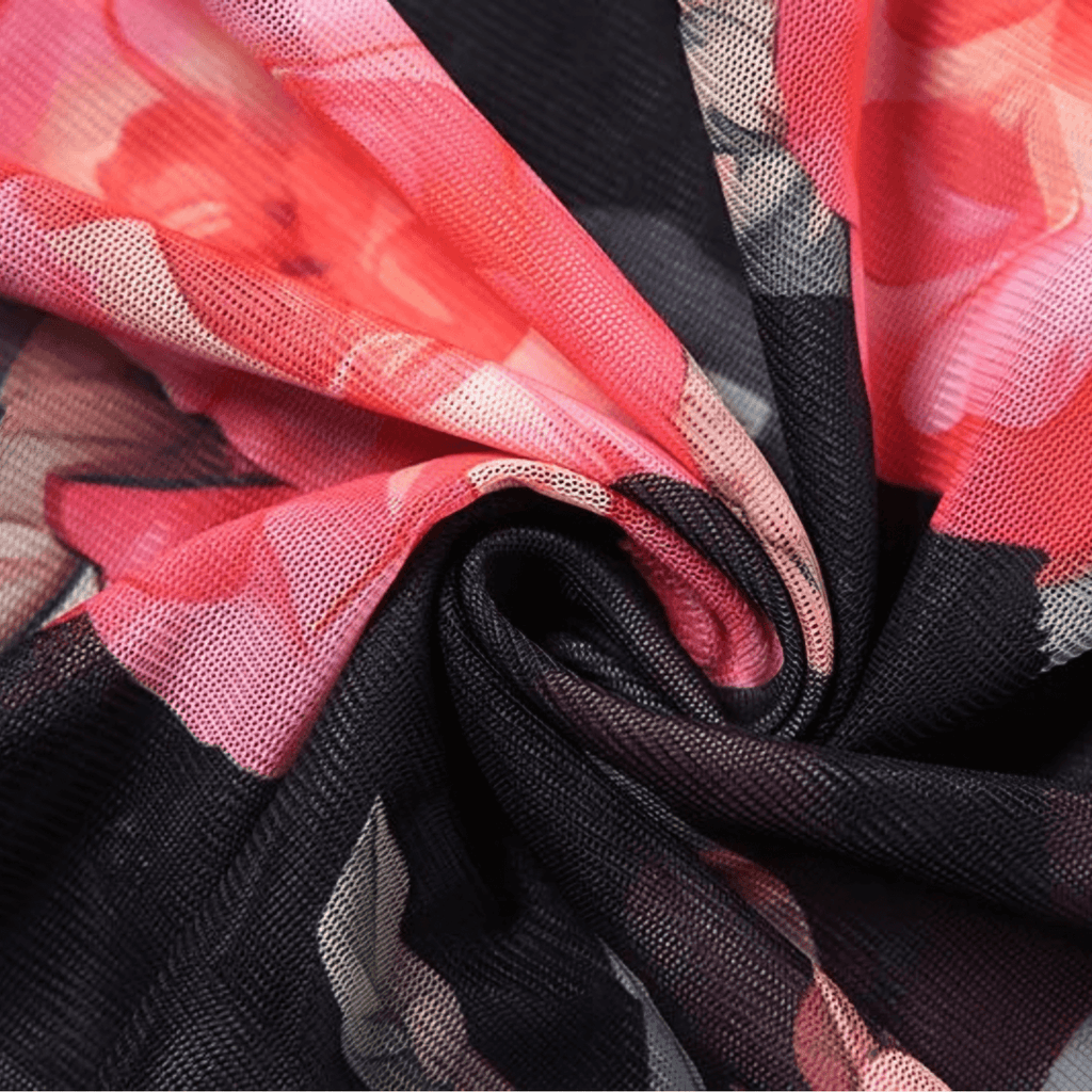 Conjunto longo composto por top de alças finas e saia maxi. Estampa floral vibrante sobre tecido translúcido. Top ajustável ao corpo com acabamento delicado.