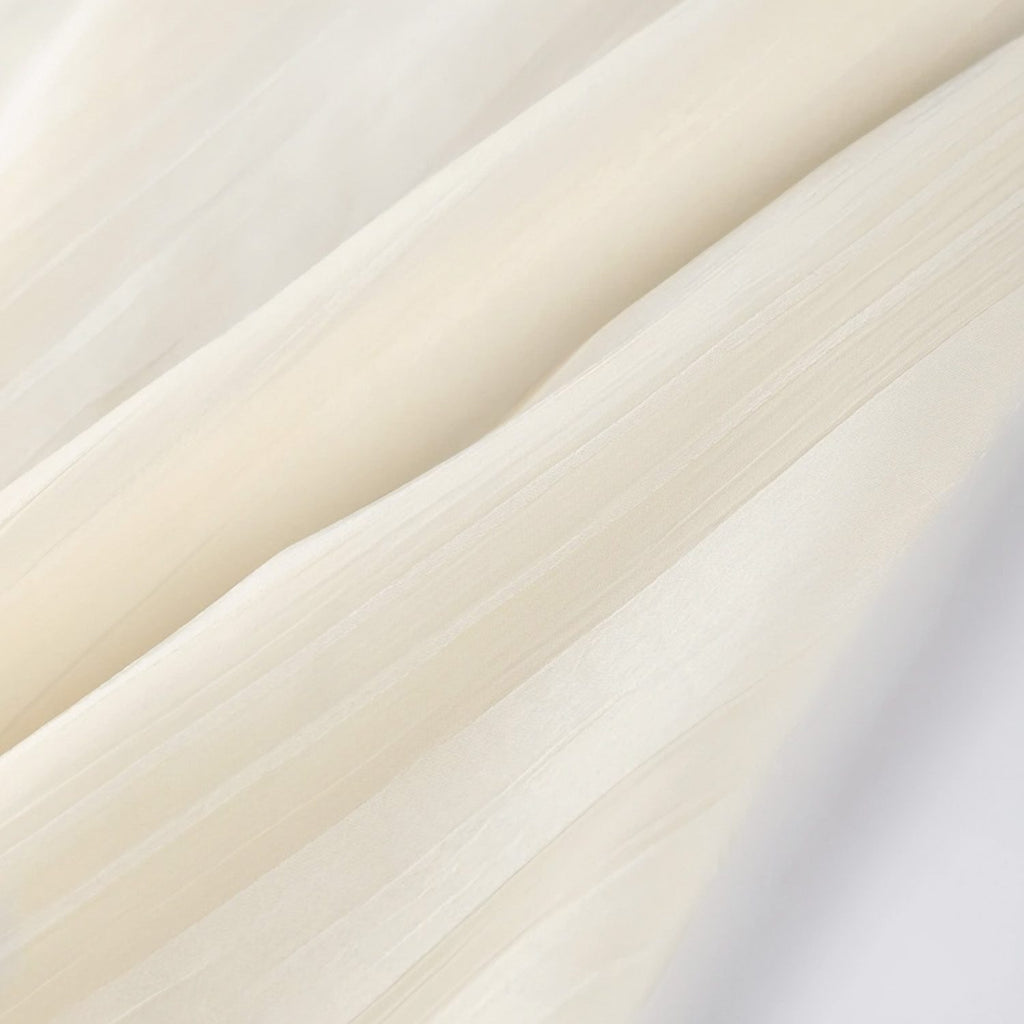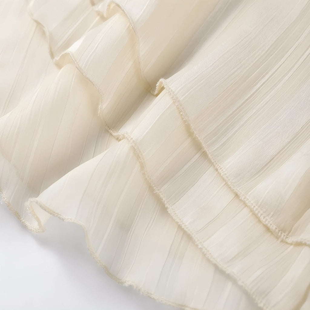 Vestido longo com recortes e fendas nas laterais. Decote profundo com alças finas cruzadas nas costas. Tecido fluido com leve brilho e toque sedoso. Modelagem ajustada na cintura e saia evasê.