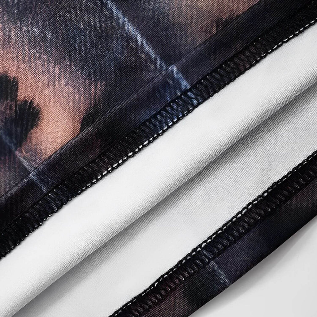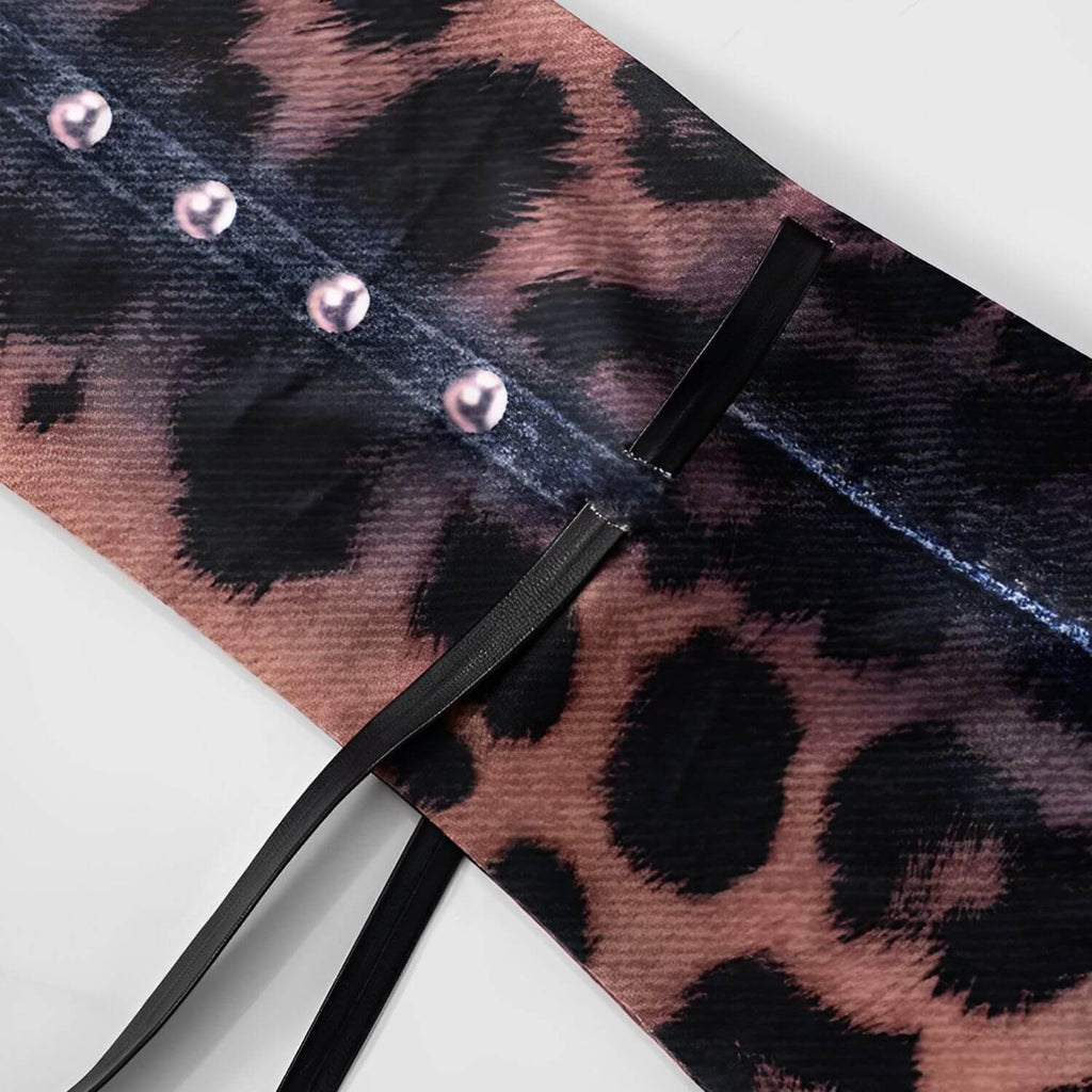 Vestido justo de manga longa com estampa animal print escurecida. Recortes com costuras marcadas e aplicação de ilhoses metálicos. Punhos com detalhe de amarração e tecido de leve transparência. Acabamento pespontado e estrutura modeladora.