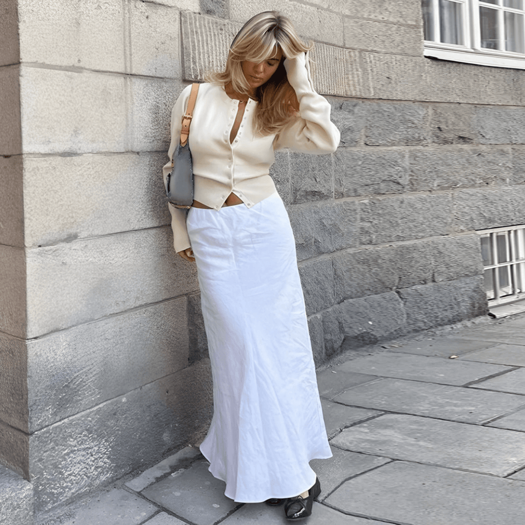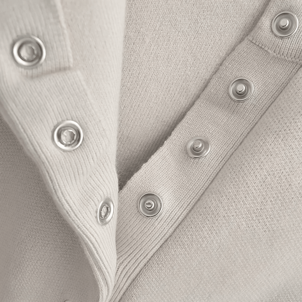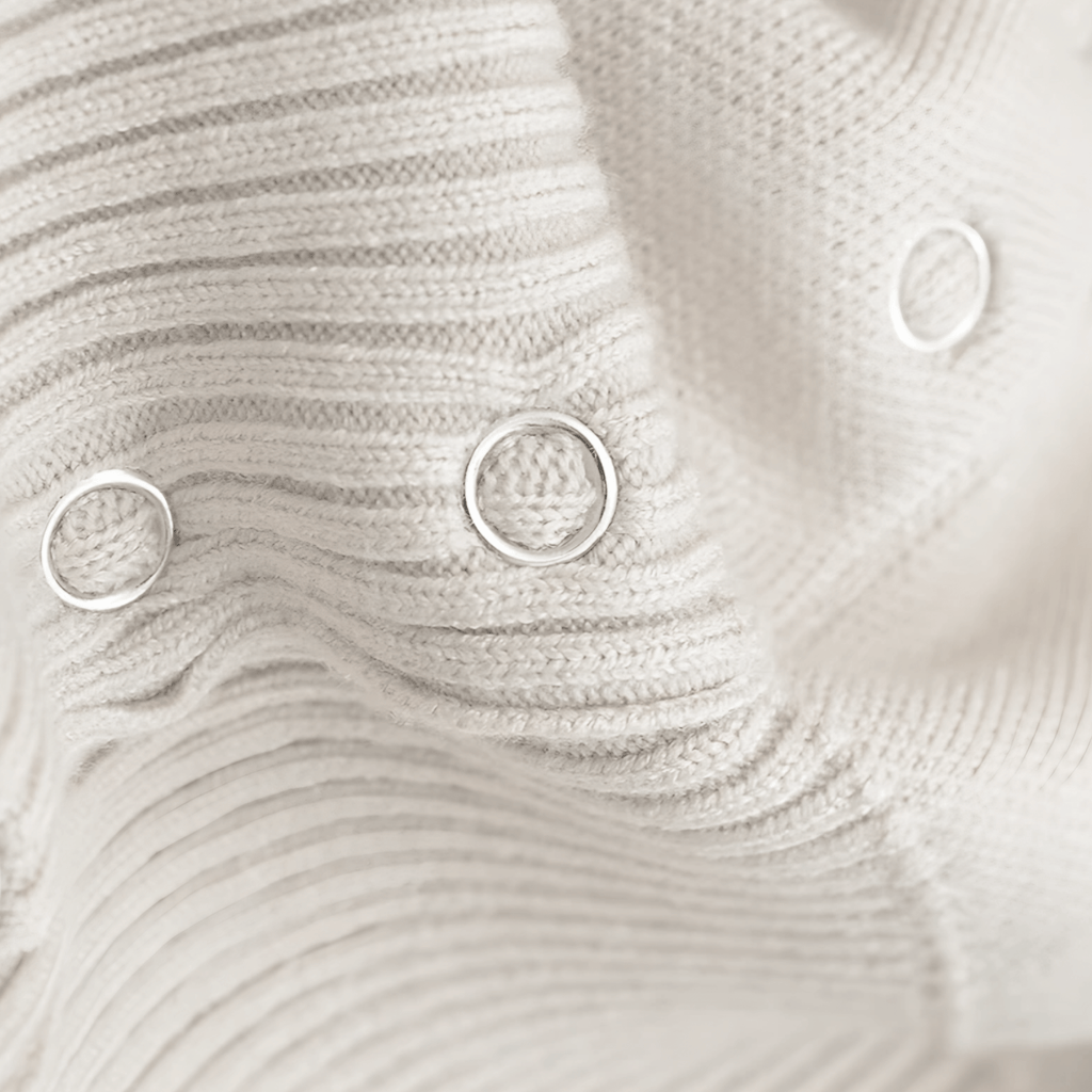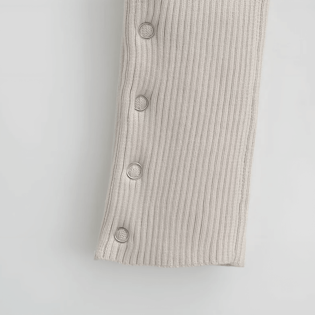 Cardigan de mangas longas e caimento ajustado. Fechamento frontal por botões metálicos. Acabamento canelado na cintura e punhos para ajuste confortável. Gola redonda com corte delicado.