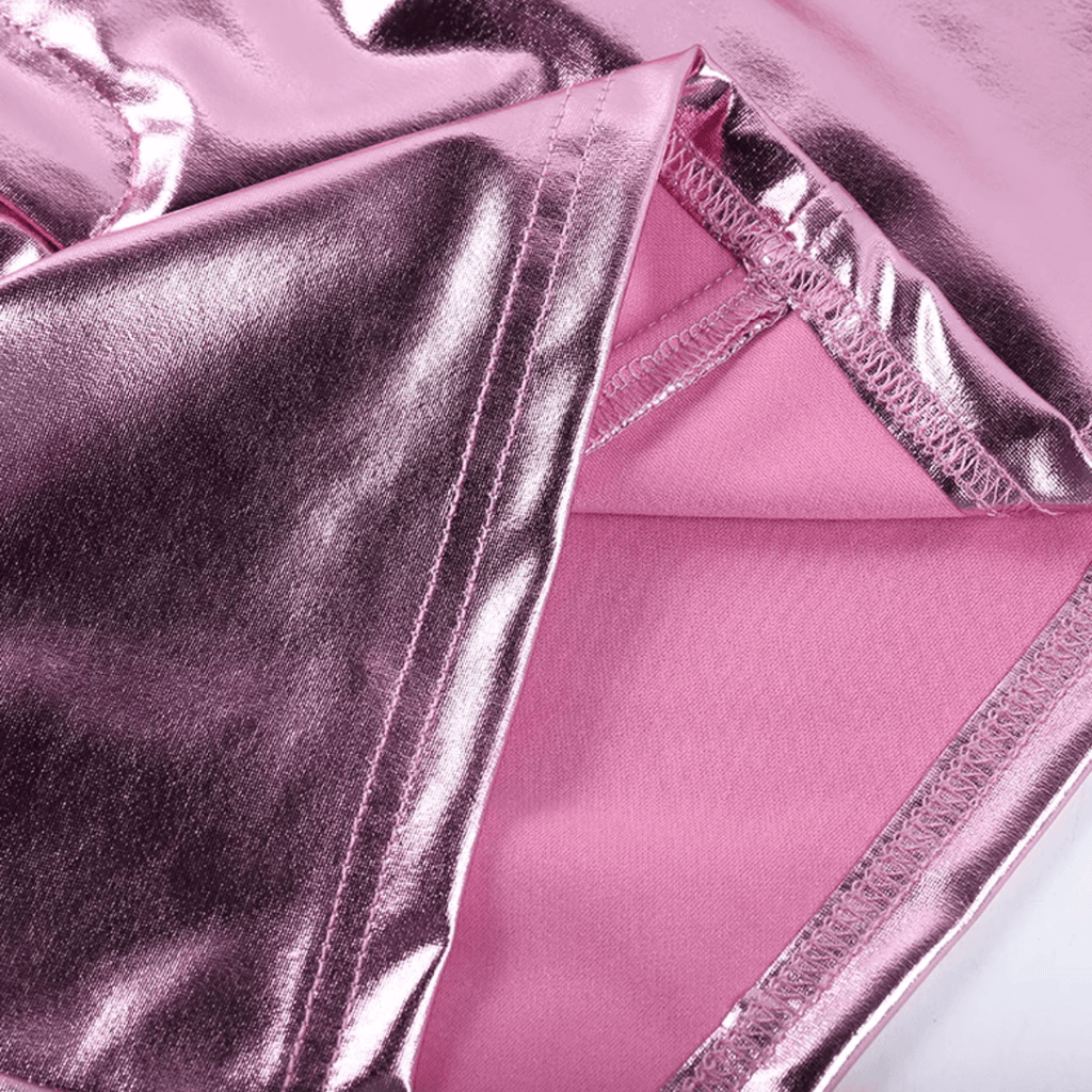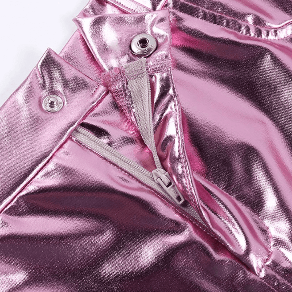 Saia curta de cintura alta com bolsos na frente. Fecho frontal com zíper e botão metálico.