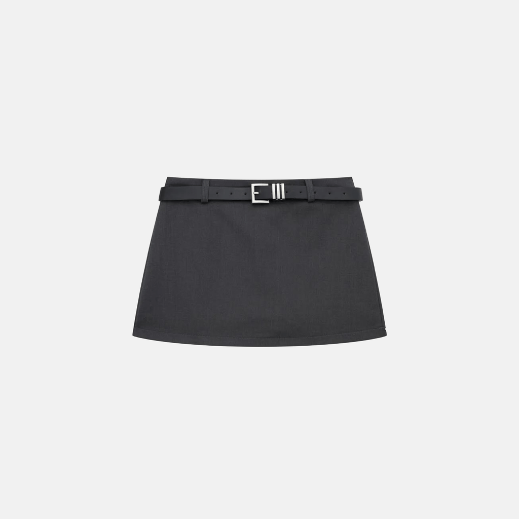 Saia curta de cintura alta com cinto ajustável e fivela metálica. Fecho lateral em zíper oculto. Tecido estruturado em cor sólida com acabamento liso e sofisticado.