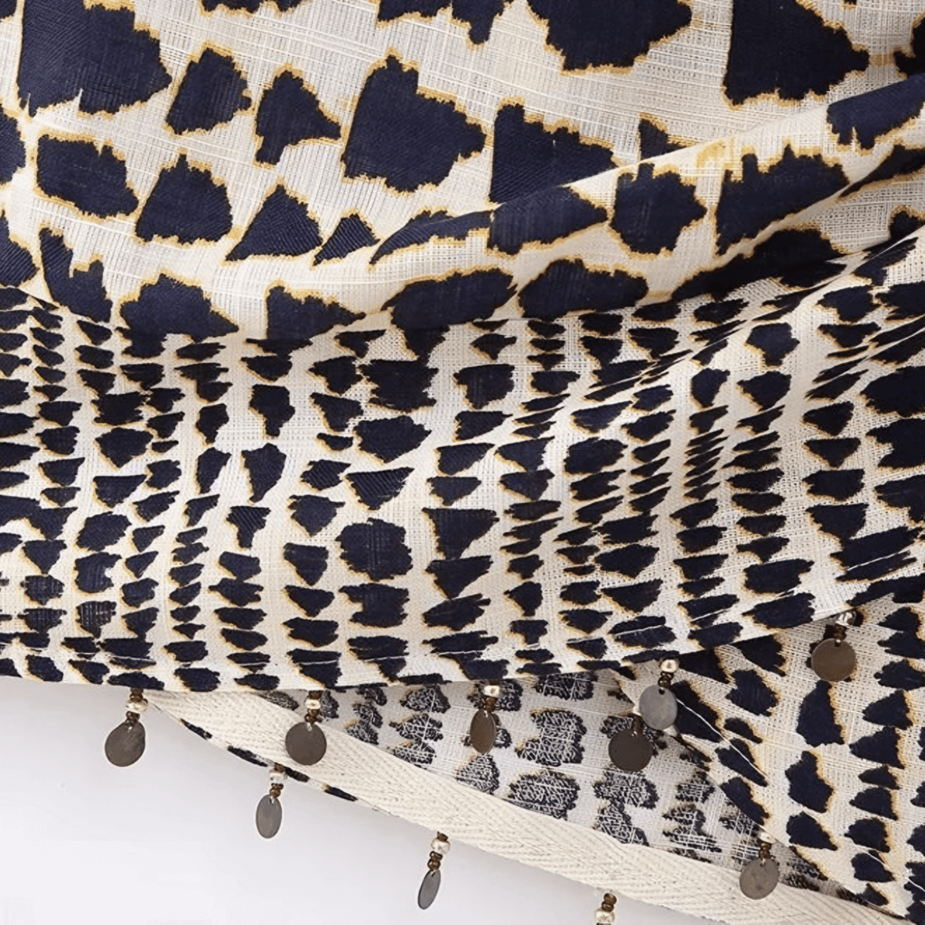 Saia estampada com nó frontal. Detalhe em mini medalhas.