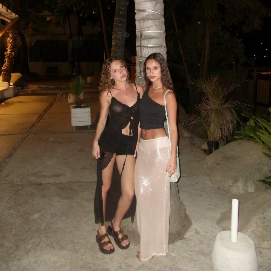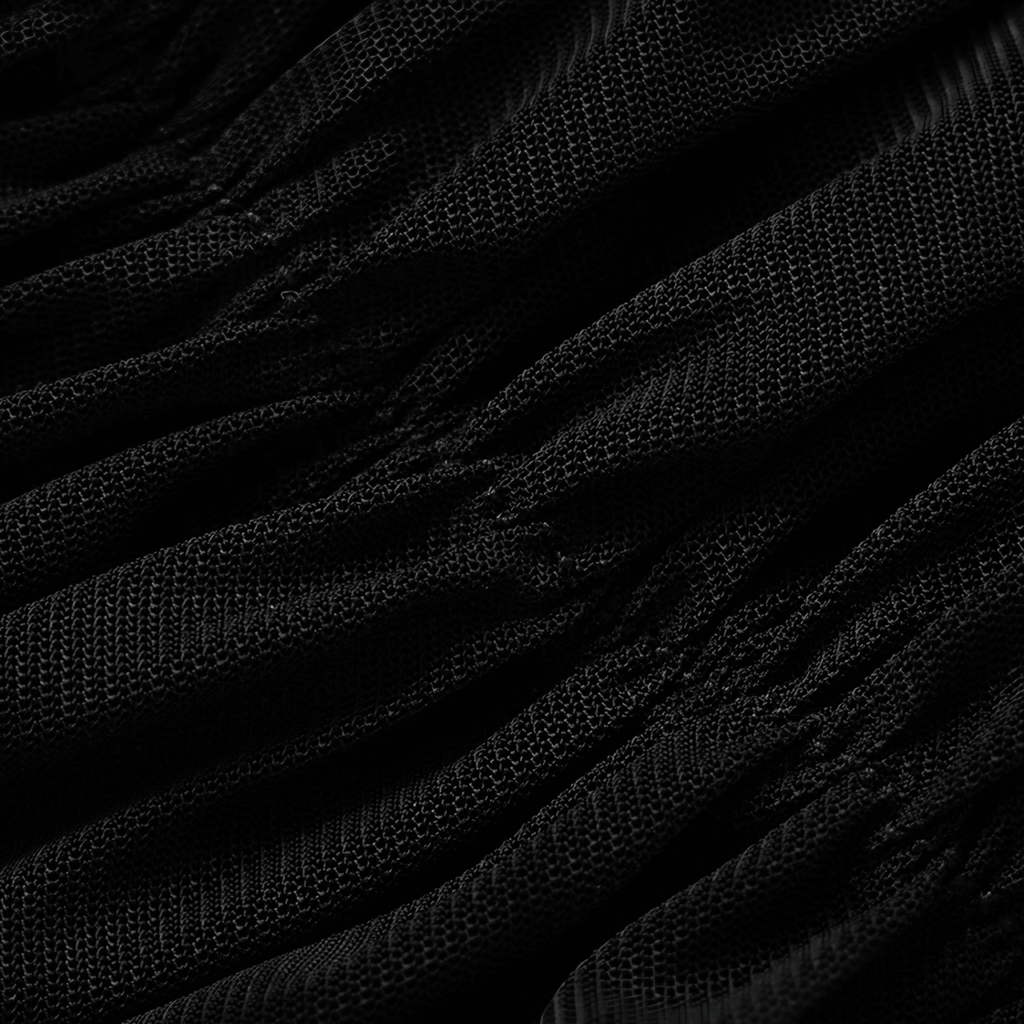 Top de decote profundo em V com detalhe franzido. Alças finas ajustáveis e tecido de transparência moderada. Fechamento frontal com amarração e costuras delicadas.