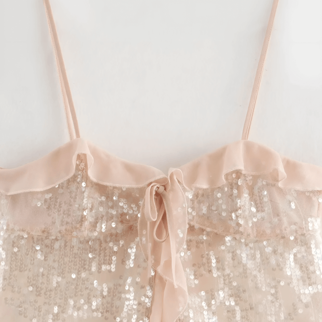 Top de alças finas com textura enrugada e acabamento suave. Decote reto com amarração frontal. Caimento solto e levemente estruturado nas costas.
