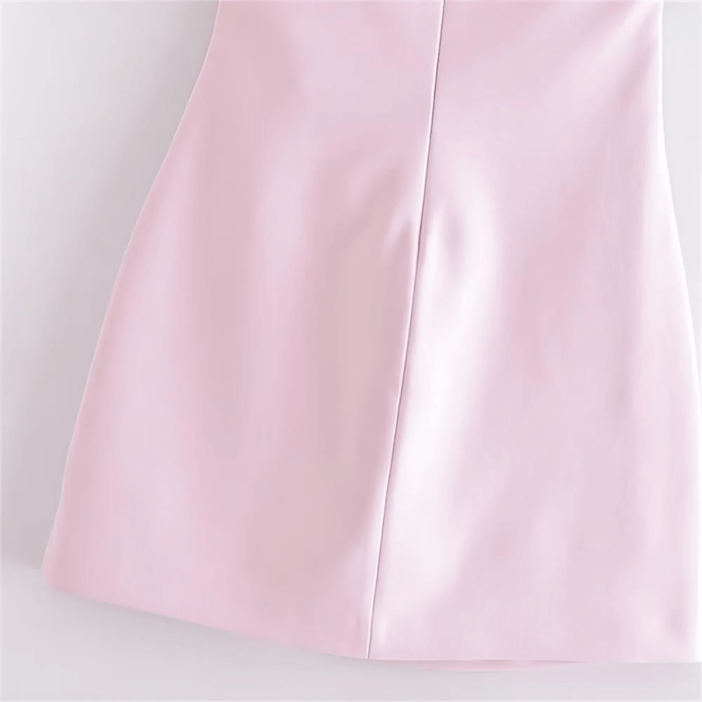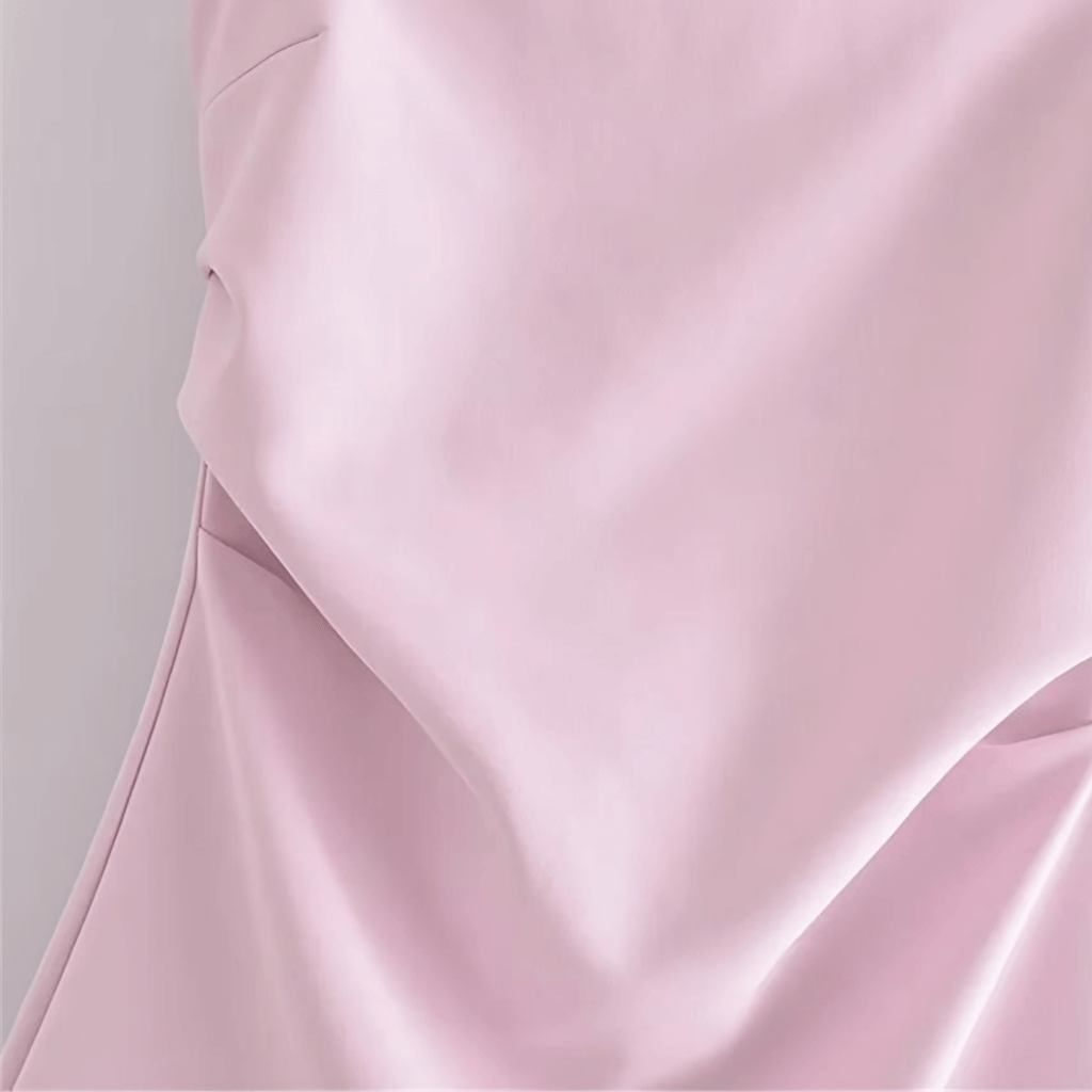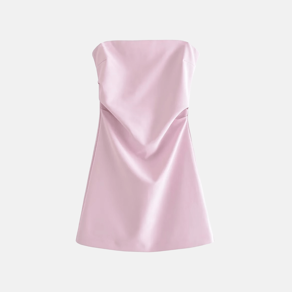 Vestido tomara que caia mini com drapeado frontal e fecho em zíper oculto nas costas. Forro interno confortável.