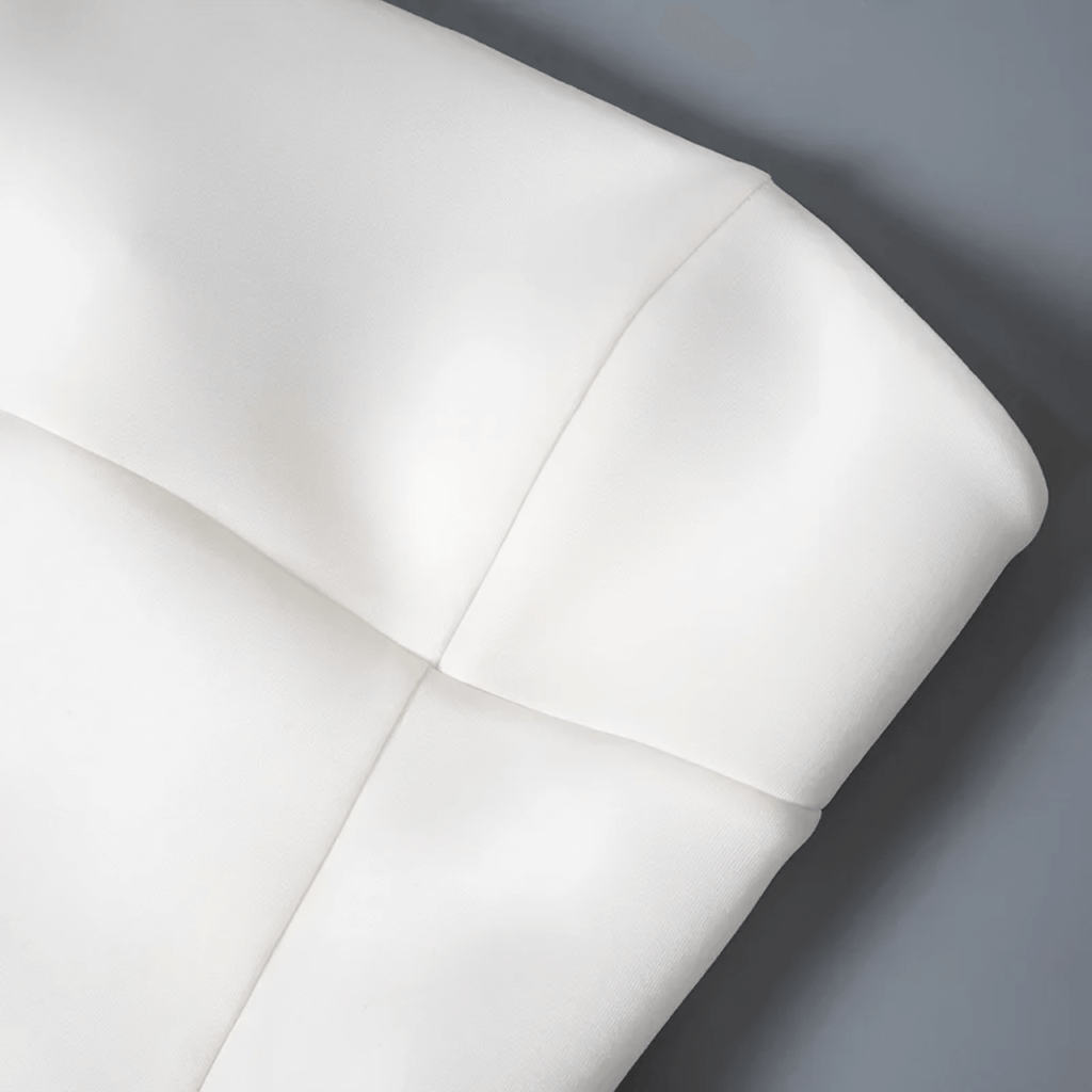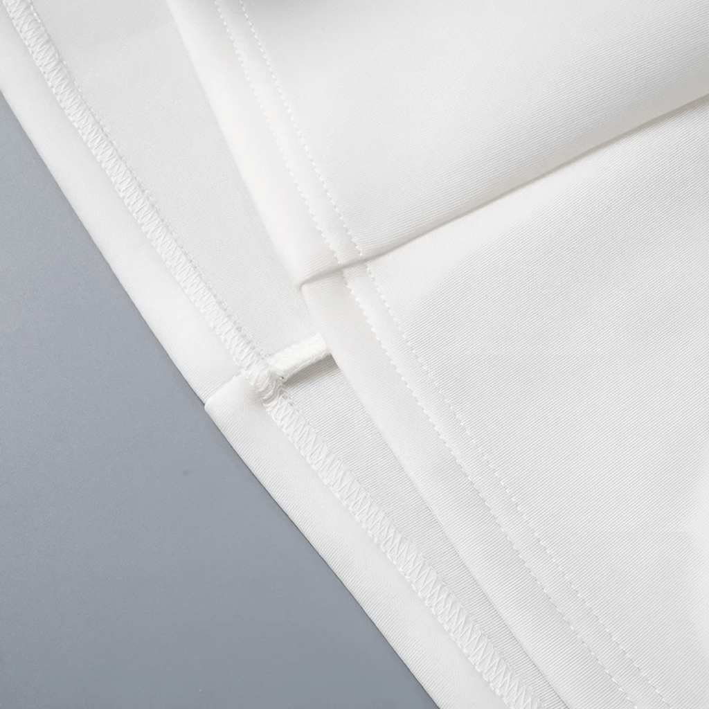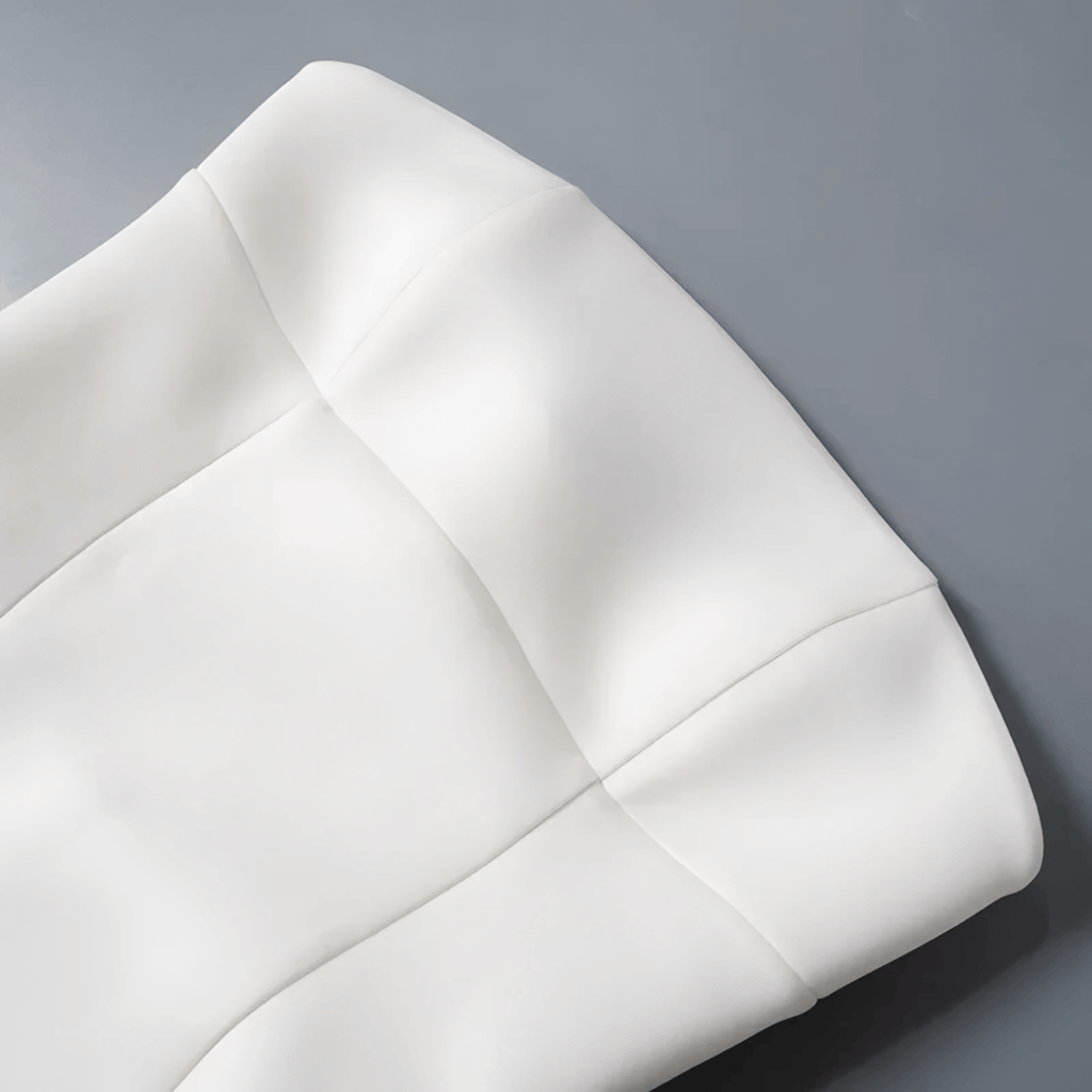 Vestido curto sem alças com silhueta ajustada ao busto e saia em A. Fecho invisível traseiro e costuras discretas para um acabamento limpo.