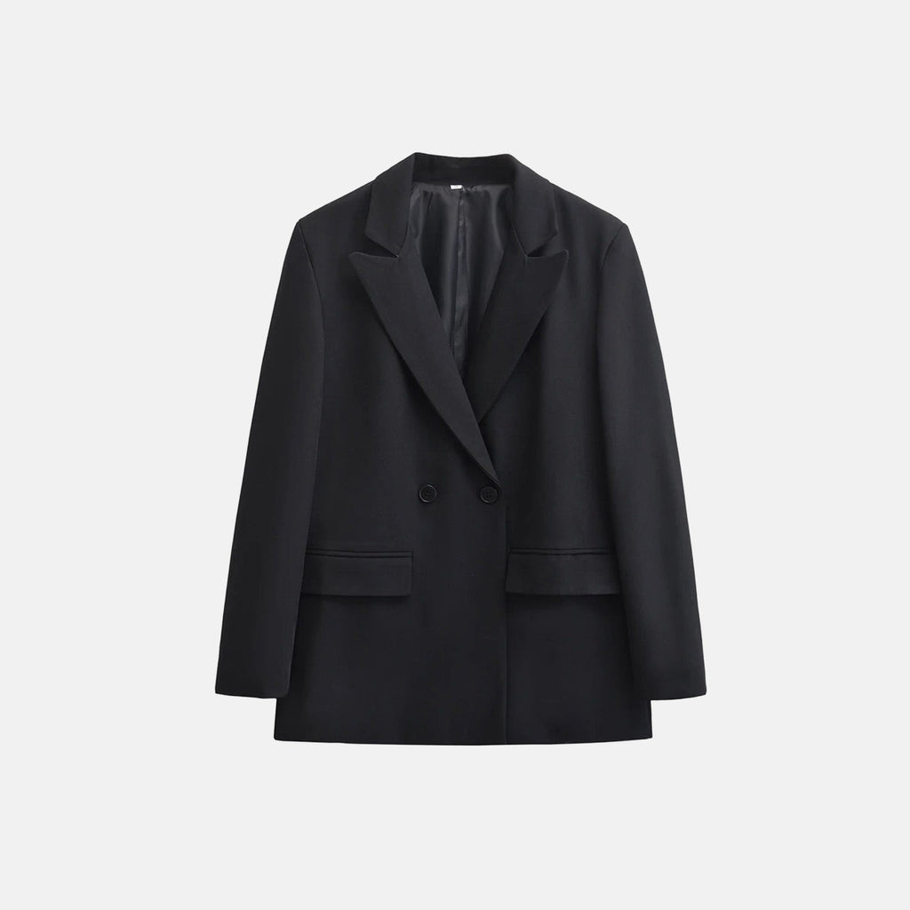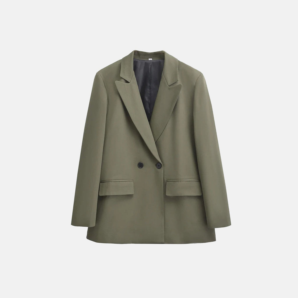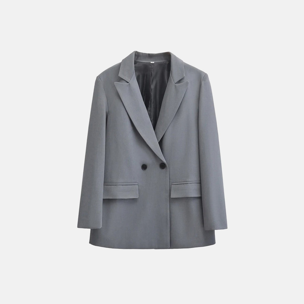 Blazer de alfaiataria com lapela clássica e modelagem reta. Fecho frontal com botões duplos. Bolsos com aba aplicados. Estrutura interna forrada. Tecido encorpado com leve textura e toque suave.