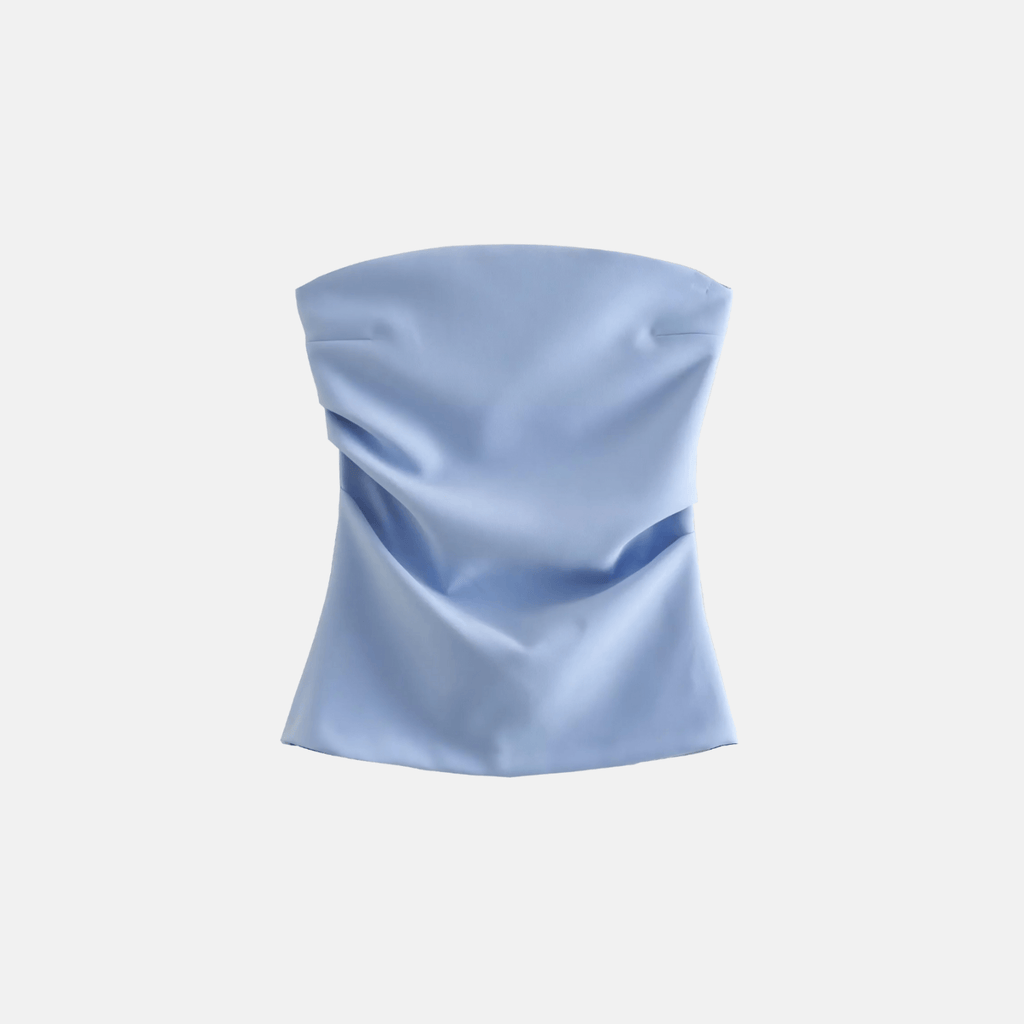 Blusa tomara-que-caia ajustável ao corpo, com acabamento liso e sem costuras visíveis.